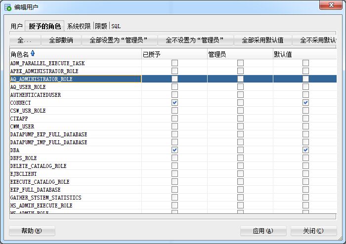 授權(quán)里面選中 connect,dba,resoure,三個(gè)權(quán)限,保存即可。